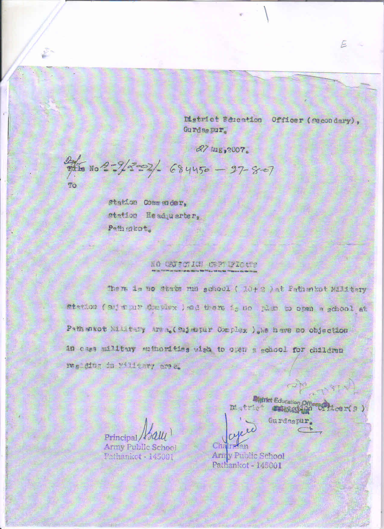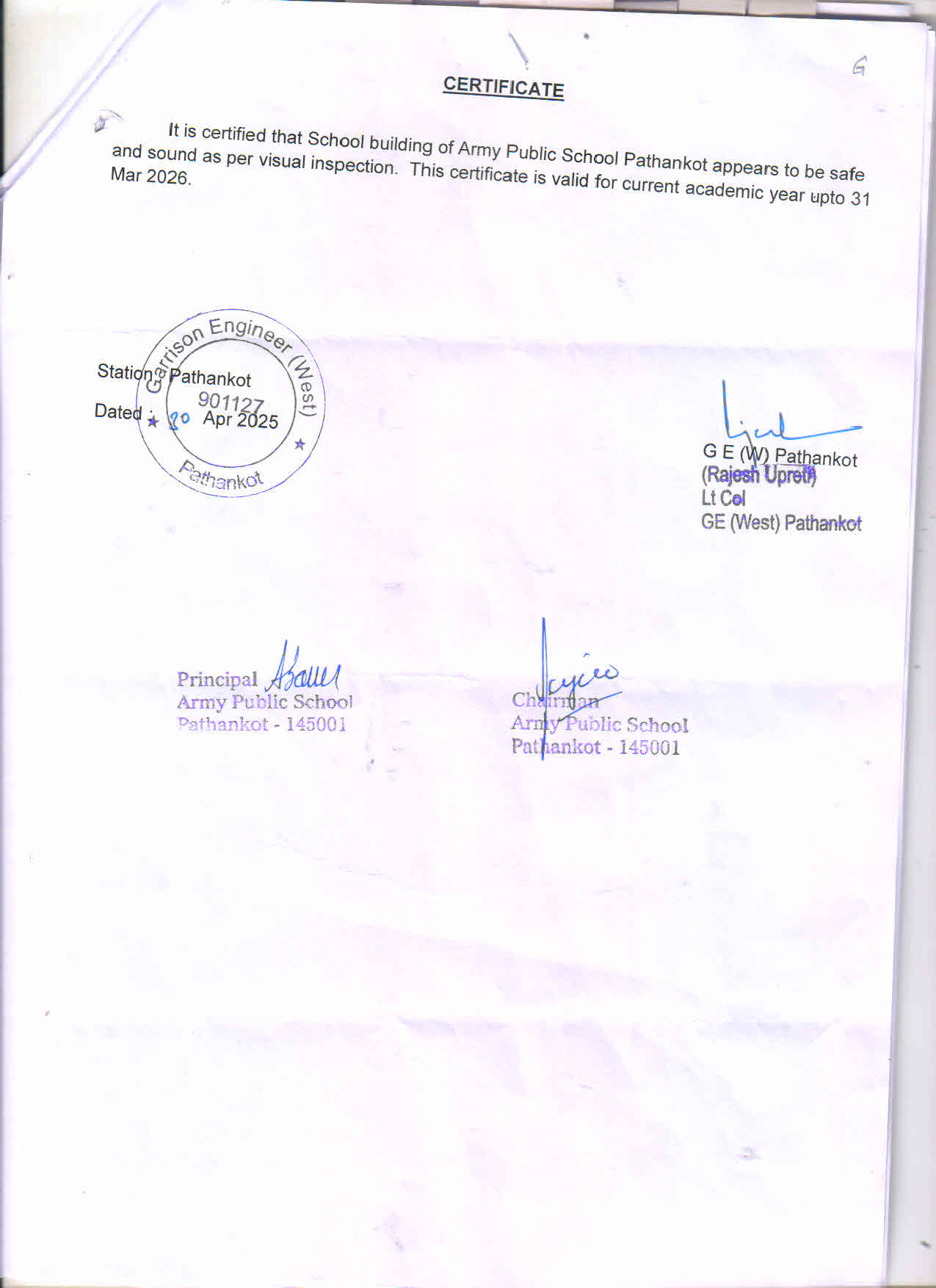 | 4. | Complete Address | Army Public School Pathankot, Army Area, Pathankot-145001, Punjab. |