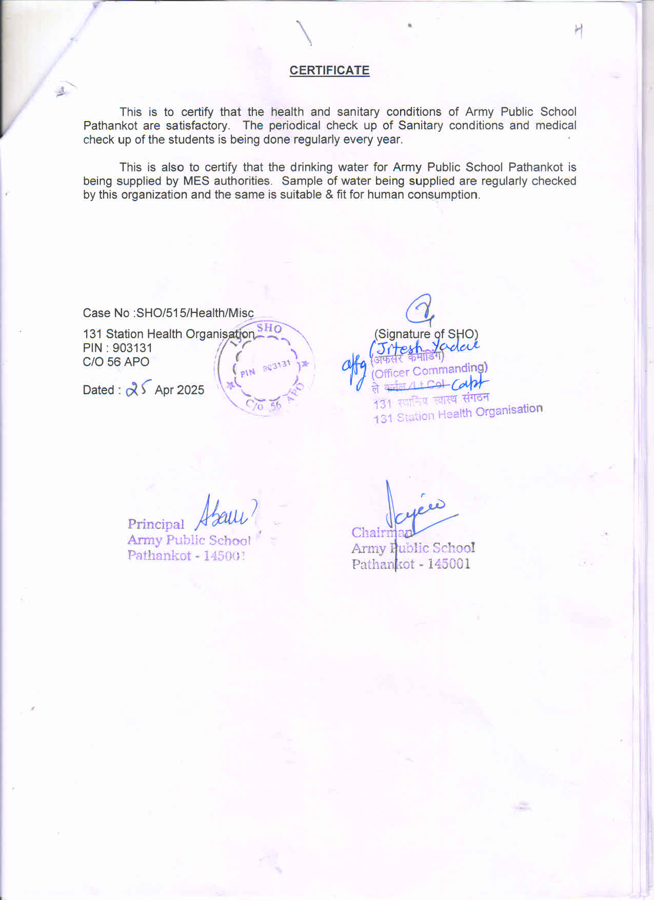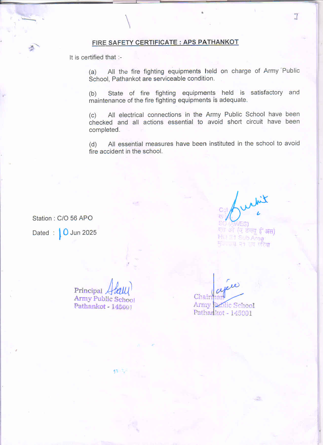 | 4. | Complete Address | Army Public School Pathankot, Army Area, Pathankot-145001, Punjab. |